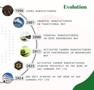 GEE CARBONS PVT LTD is a privately owned family business, which had a humble beginning as a Charcoal Manufacturer by the founder Mr. Balasubramani.G. Incepted in the year 1997, at Kangayam, (Tamil Nadu, India) we “Gee Carbons,” are recognized as one of the dominant processors and suppliers of an Coconut Shell Activated Carbon.
